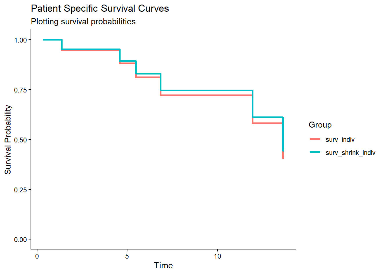 surv_indiv <- exp(-cumhaz_indiv) # survival probability of individual patient before shrinkage